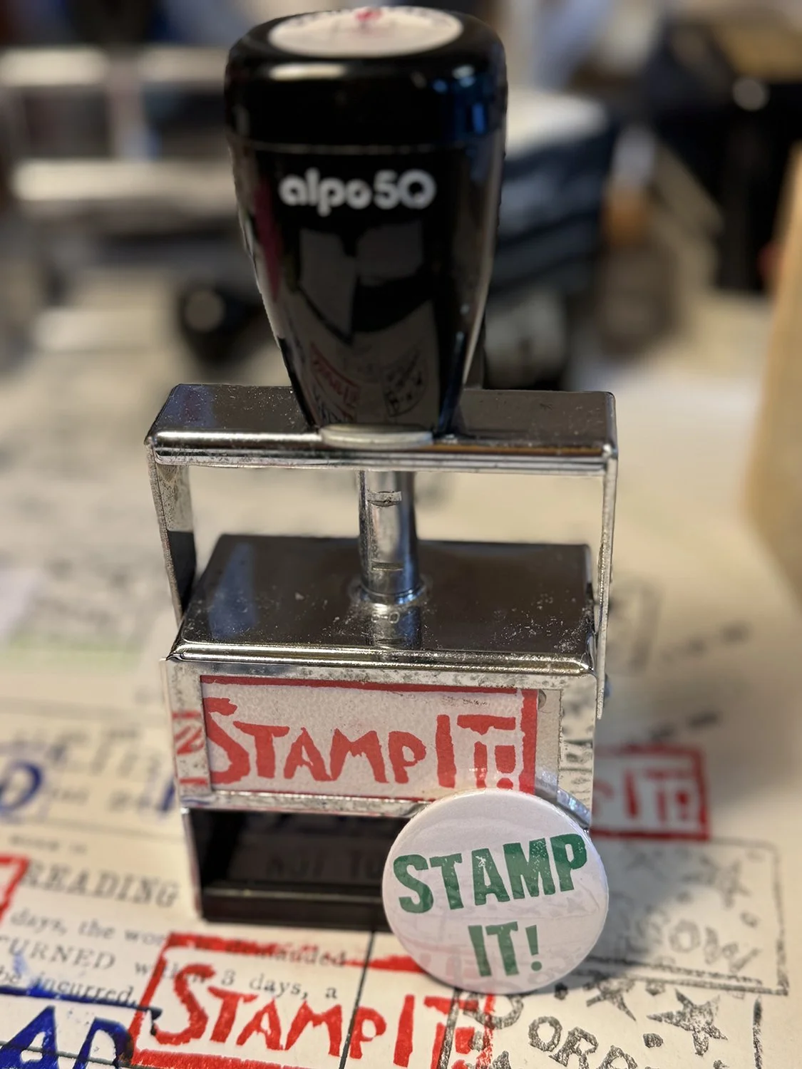 I created alternative wording for the stamps by using carved lino blocks.